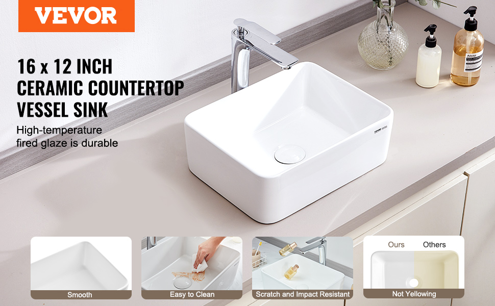Toto umývadlo na nádoby je vyrobené z vysokokvalitnej keramickej hliny, ktorá bola úplne vitrifikovaná vypálením pri vysokej teplote, vďaka čomu má tvrdú štruktúru, ktorá časom nežltne. Povrch je hladký a jemný s nízkou nasiakavosťou, vďaka čomu je odolný voči škvrnám a ľahko sa udržiava.