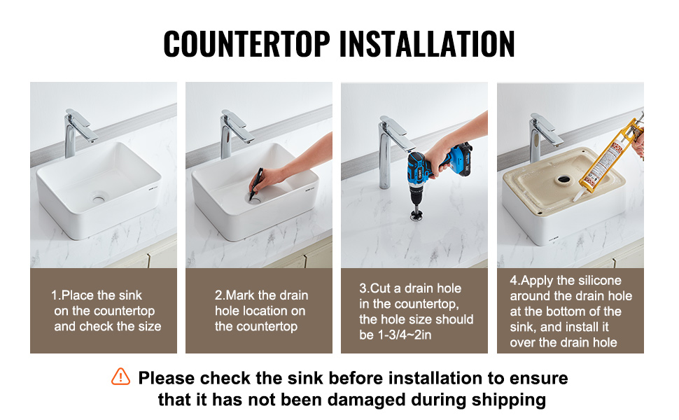 Umývadlo je obklopené penovým polstrovaním, ktoré zabraňuje poškodeniu počas prepravy. Pred inštaláciou drezu ho skontrolujte, aby ste sa uistili, že sa pri preprave nepoškodil. Pri jednoduchej inštalácii v 4 krokoch postupujte podľa pokynov v návode.