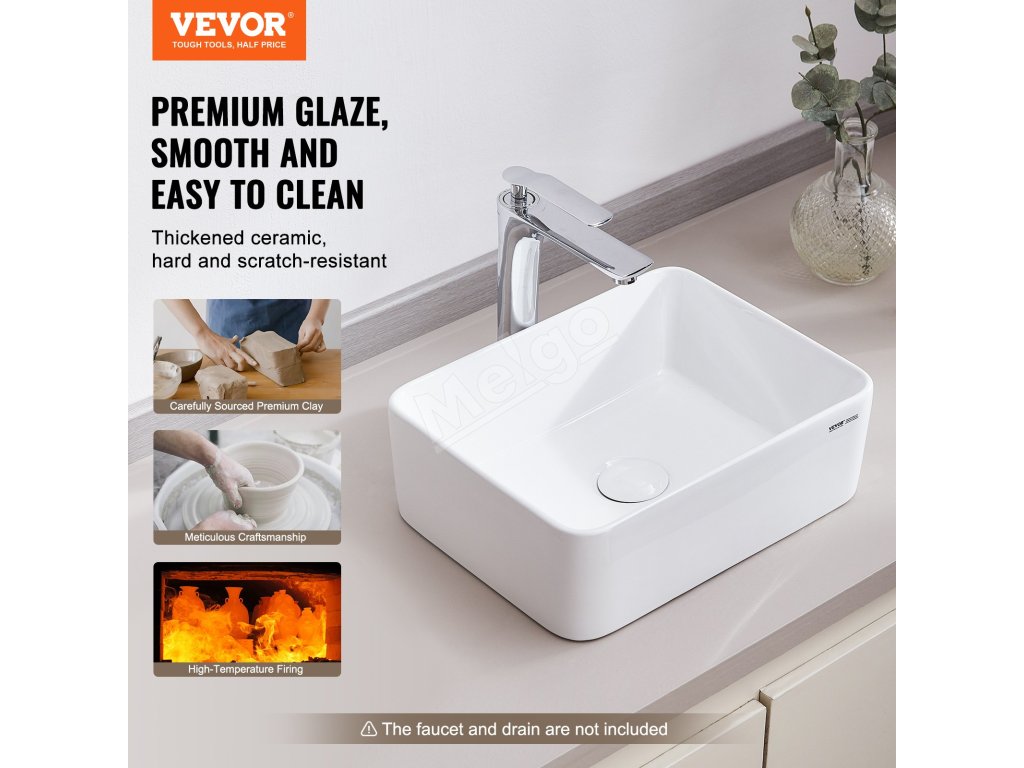 Toto umývadlo na nádoby je vyrobené z vysokokvalitnej keramickej hliny, ktorá bola úplne vitrifikovaná vypálením pri vysokej teplote, vďaka čomu má tvrdú štruktúru, ktorá časom nežltne. Povrch je hladký a jemný s nízkou nasiakavosťou, vďaka čomu je odolný voči škvrnám a ľahko sa udržiava.