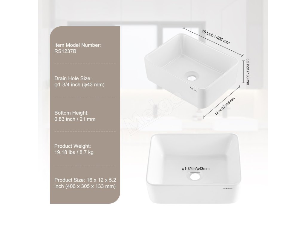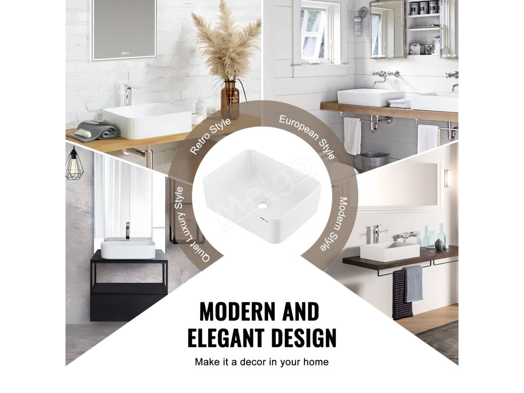 Vďaka minimalistickému obdĺžnikovému tvaru a decentnej bielej farbe tento drez vyžaruje krásu a luxus. Doplní rôzne štýly interiéru a je obľúbené medzi majiteľmi domov na použitie v kúpeľniach a toaletných stolíkoch. Je vhodný aj do hotelov, karavanov, reštaurácií, kancelárskych budov a ďalších priestorov.