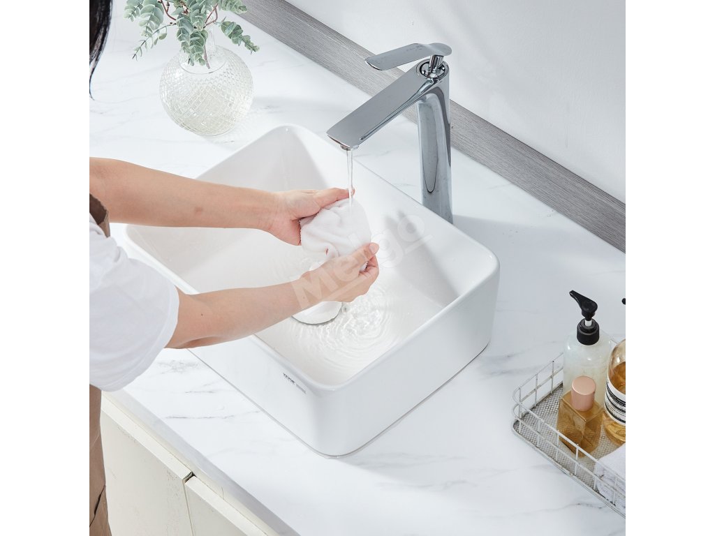 Obdĺžnikové keramické nadpultové umývadlo 16"×12", biele do kúpeľne