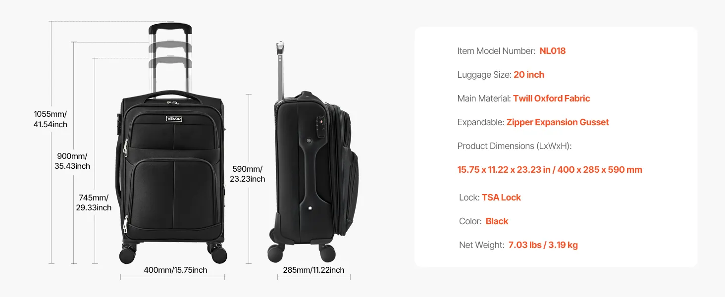 Táto 20-palcová ľahká rozšíriteľná batožina softside s otočnými kolieskami maximalizuje kapacitu vášho batožinového priestoru a je dokonalým spoločníkom na stredne dlhé až dlhé cesty.