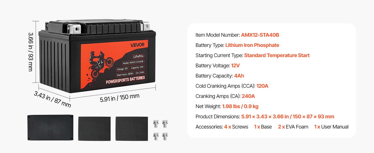 Vďaka kompaktným rozmerom a nízkej hmotnosti je inštalácia tejto batérie pre skútre jednoduchá. Jeho univerzálny tesniaci krúžok umožňuje nahradiť mnohé olovené batérie motocyklov, vďaka čomu je modernizácia rýchla a jednoduchá.