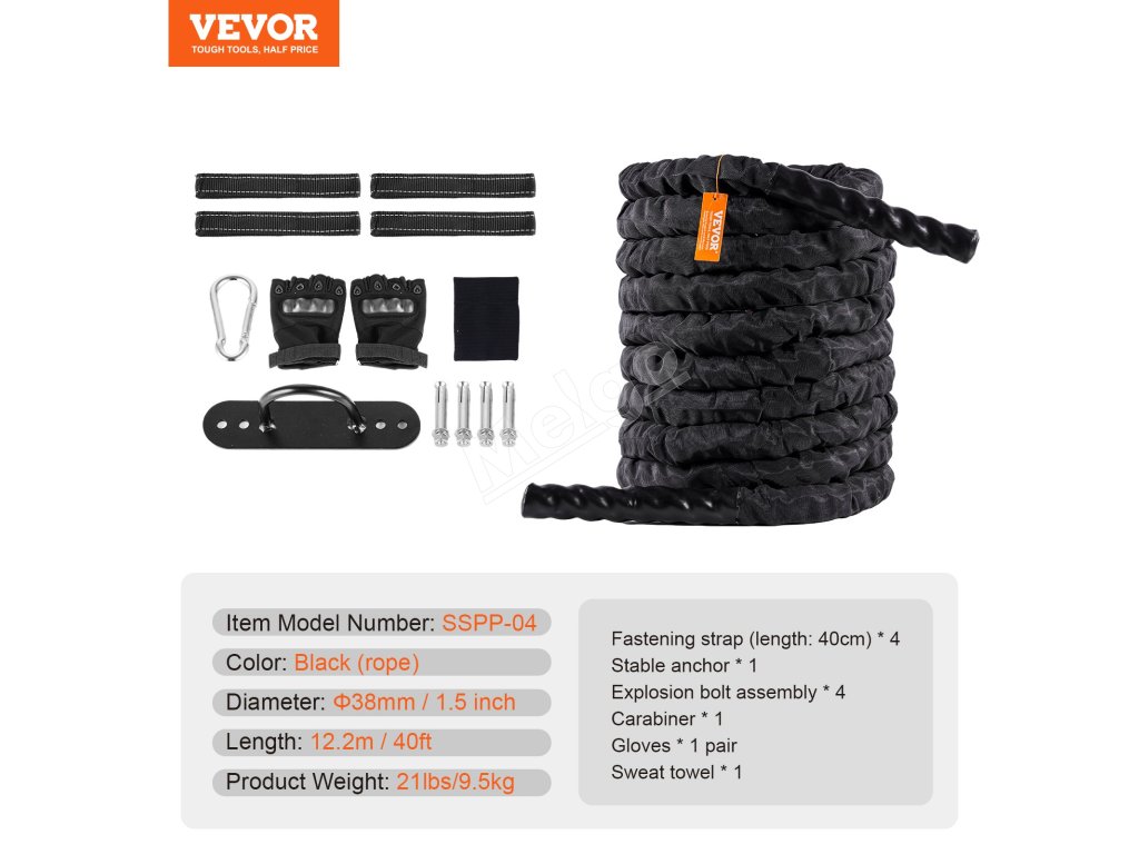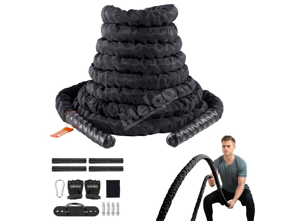 Toto profesionálne bojové lano vám umožňuje vykonávať rôzne ťahové alebo lezecké cvičenia na lepšie odbúravanie tuku a formovanie postavy, čím účinne zvyšuje vašu silu. Aby ste predišli otlakom alebo mozolom na dlaniach, prikladáme ako darček rukavice.