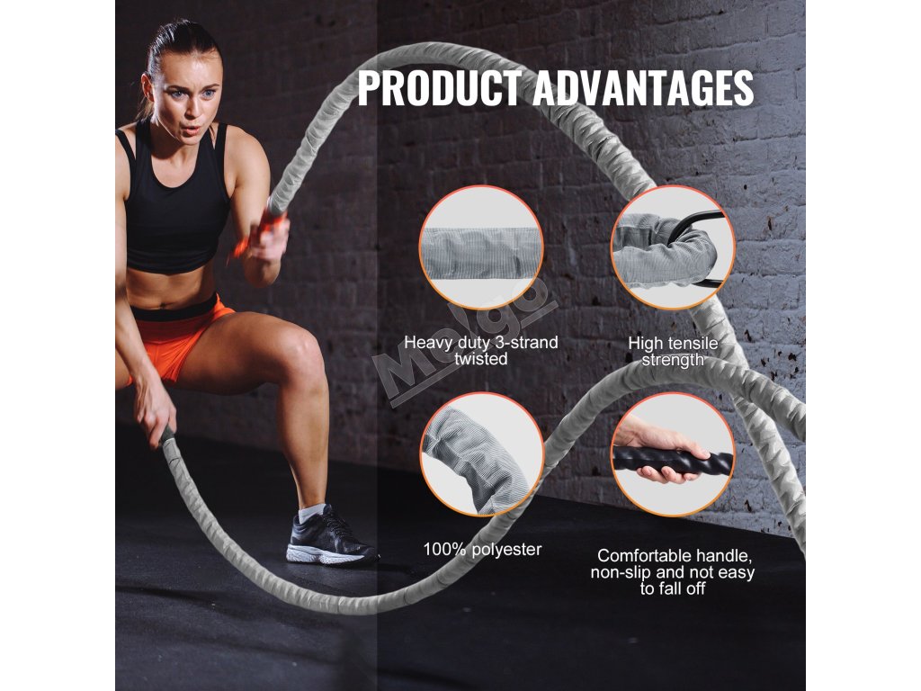 Toto profesionálne bojové lano vám umožňuje vykonávať rôzne ťahové alebo lezecké cvičenia na lepšie odbúravanie tuku a formovanie postavy, čím účinne zvyšuje vašu silu.