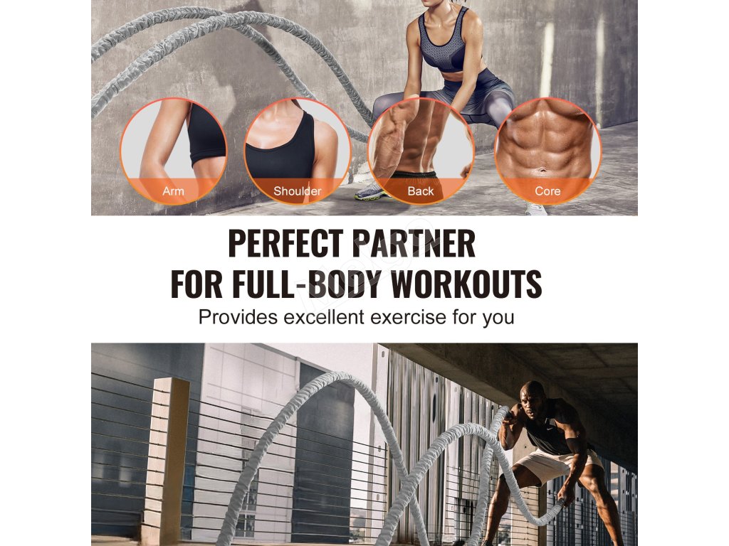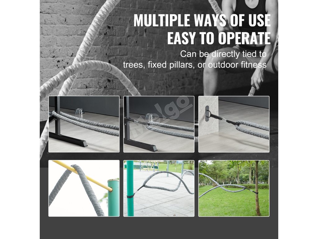 Naše cvičebné bojové lano je bezpečné na používanie pre mužov aj ženy všetkých úrovní fyzickej zdatnosti. Dlhšie laná vážia viac, čím poskytujú náročnejší tréning.