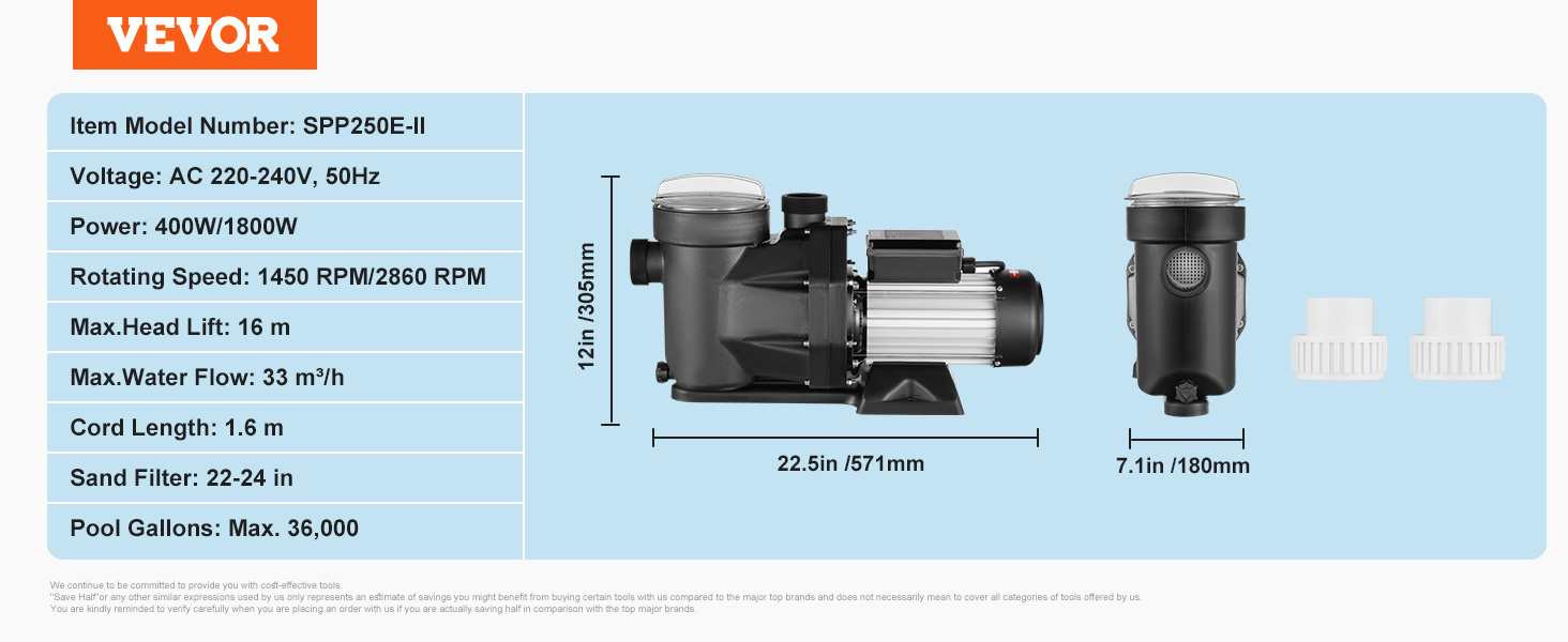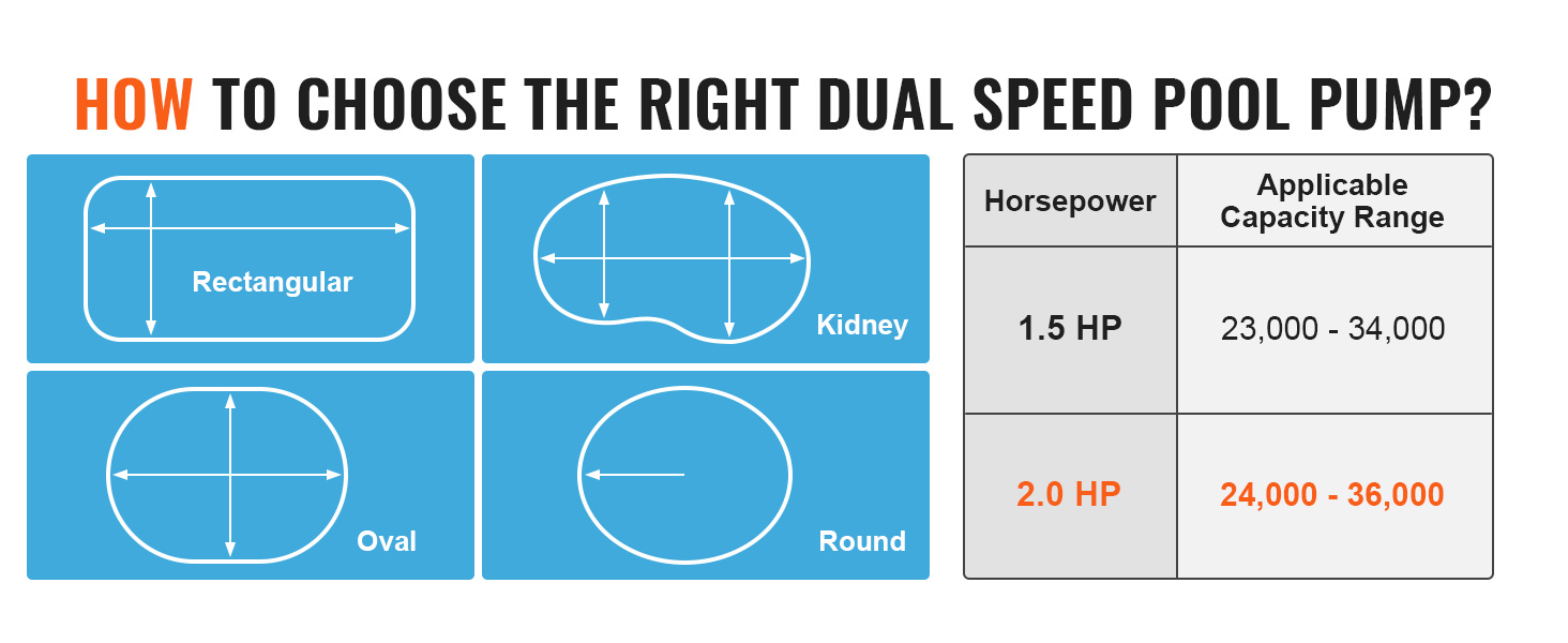Vyberte si dokonalý výkon pre svoj bazén! Naše dvojrýchlostné bazénové čerpadlo sa dodáva v dvoch výkonových variantoch: 1.5 HP a 2,0 HP. Bez ohľadu na to, či máte malý nafukovací bazén alebo veľký nadzemný bazén, môžete si vybrať ideálny model, ktorý bude spĺňať vaše špecifické potreby.
