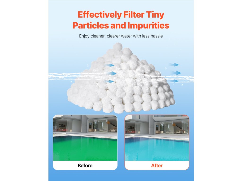 Vďaka vynikajúcej presnosti filtrácie, silnej adsorpcii a rýchlej rýchlosti filtrácie poskytujú naše bazénové filtračné loptičky pôsobivý výkon. Len 700 g filtračných guľôčok dokáže nahradiť 25 kg tradičného piesku, takže ide o účinnú a priestorovo úspornú náhradu.