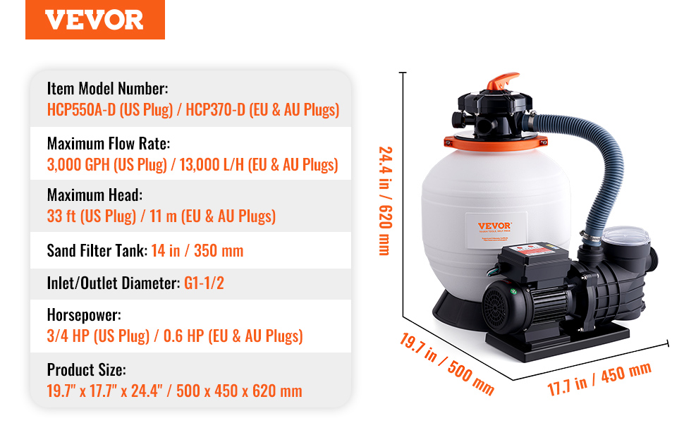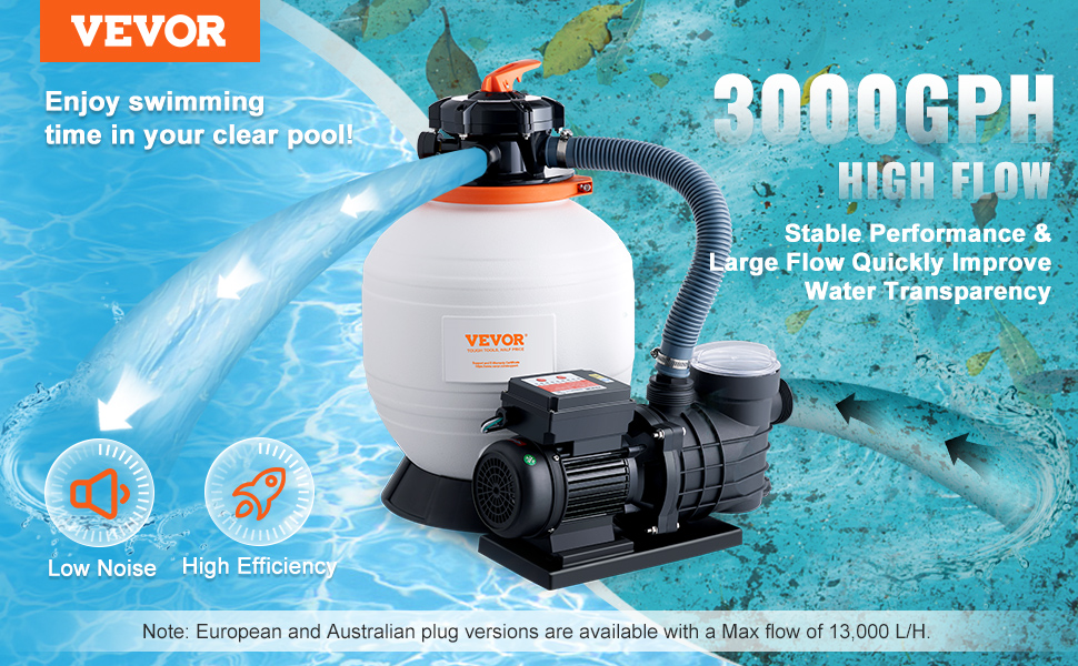 Naše čerpadlo pieskovej filtrácie, navrhnuté špeciálne pre stredné a malé nadzemné bazény, má prietok 13 000 l/h, 350 mm termoplastickú nádrž na piesok, 6-cestný viaccestný ventil a medený motor s ochranou proti preťaženiu a prehriatiu. Dôverujte nášmu čerpadlu, aby bol váš bazén žiarivo čistý a dobre udržiavaný.