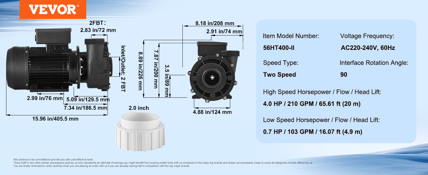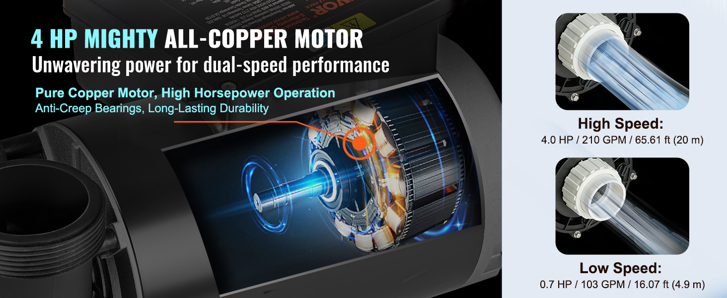Dvojrýchlostné SPA čerpadlo VEVOR 56 Frame Motor