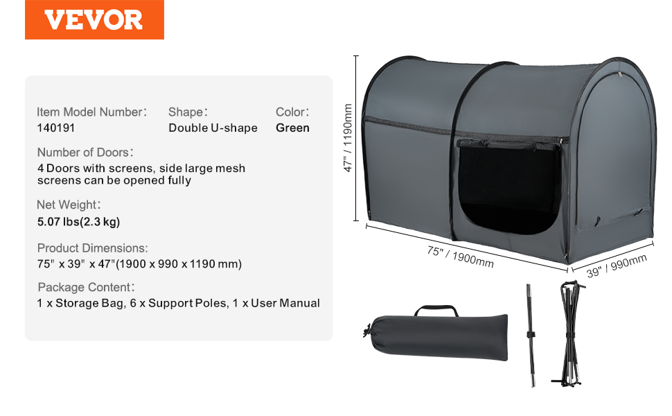 Tento 75" x 39" x 47" (1900 x 990 x 1190 mm) je vhodný pre členov rodiny alebo priateľov na spoločné používanie, pretože poskytuje dostatok priestoru na aktivity a odpočinok. Okrem toho veľkopriestorový dizajn znižuje pocit uzavretosti a stiesnenosti, vďaka čomu sa budete cítiť uvoľnenejšie a pokojnejšie.