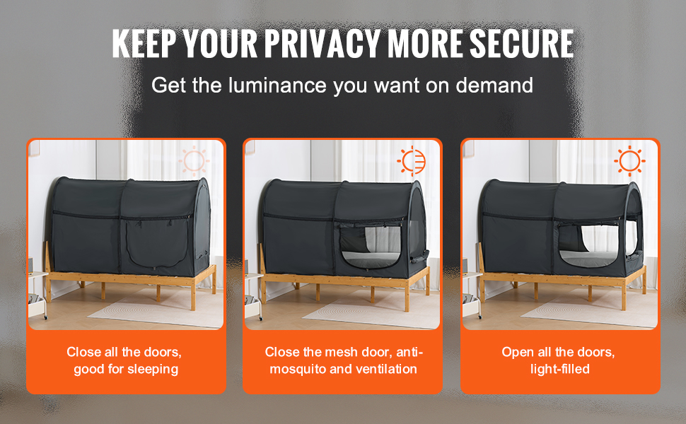 Keď zatvoríte všetky dvere, väčšina svetla sa zablokuje a vy môžete pohodlne spať aj cez deň. Môžete tiež zatvoriť len sieťové dvere pre lepšie zatemnenie proti komárom a vetranie. Keď otvoríte dvojité dvere, budete mať dostatok svetla.