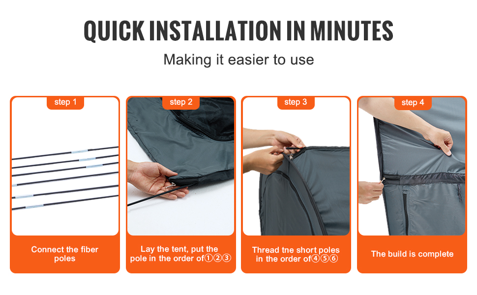 Jednoduchý proces inštalácie vám ušetrí čas a energiu. V priebehu niekoľkých minút si môžete ľahko zriadiť vlastný súkromný priestor, aby ste si mohli rýchlejšie vychutnať útulný priestor stanu.