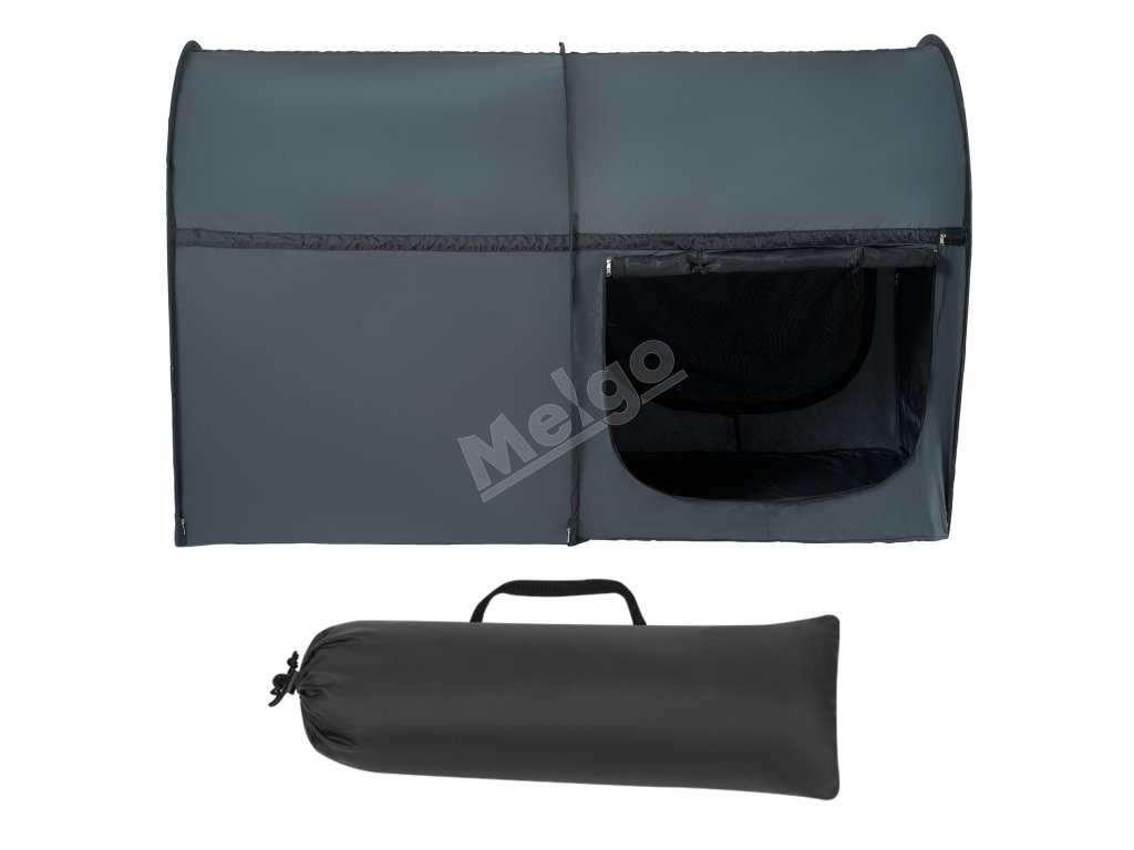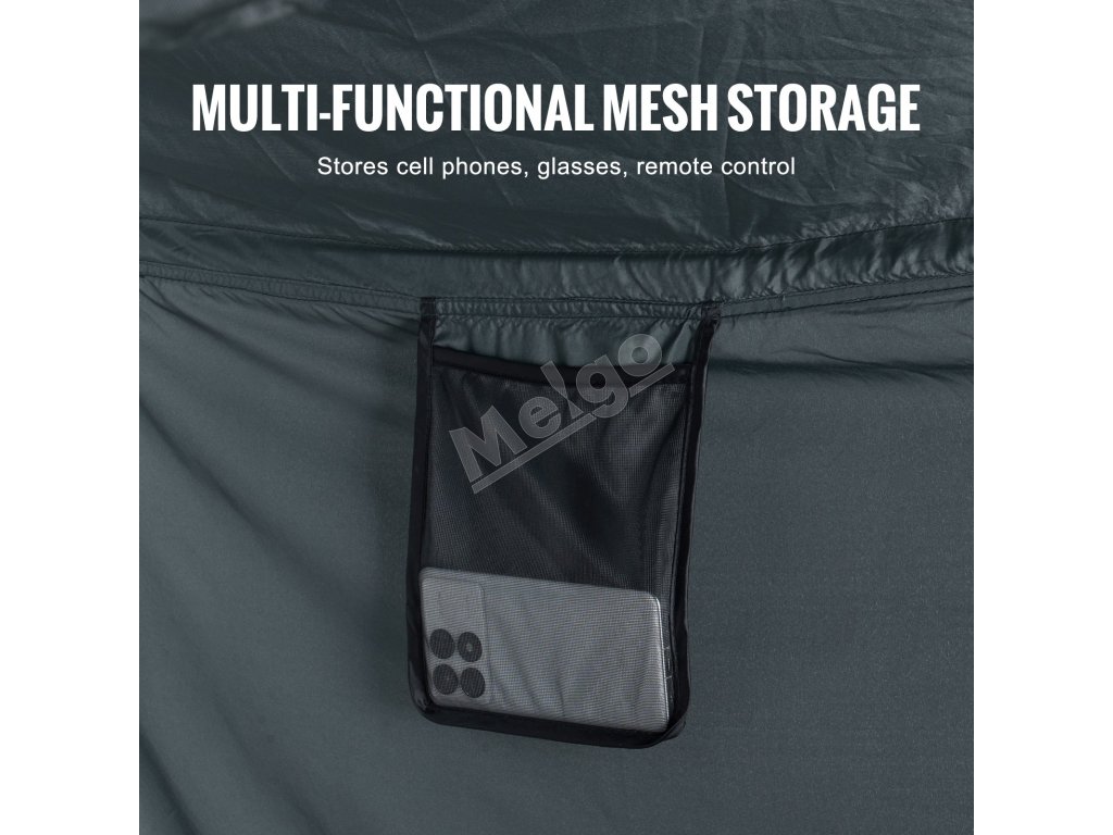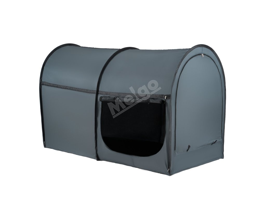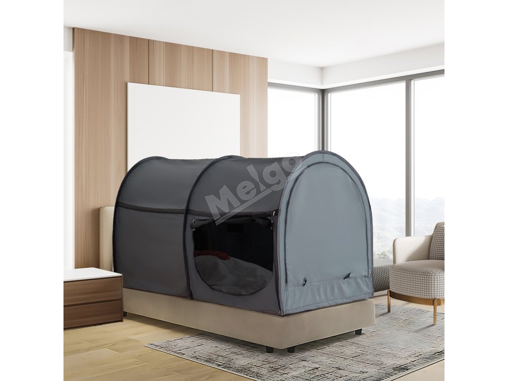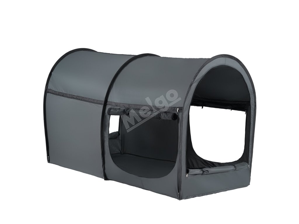 Posteľný stan s rozmermi 75" x 39" x 47" (1900 x 990 x 1190 mm) poskytuje blokovanie svetla pre súkromie v akomkoľvek priestore. Je vybavený štyrmi vstupnými bodmi so sieťovinou a látkou na ochranu súkromia, ako aj vreckom na telefón, háčikom na nočné svetlo a suchým zipsom na nabíjanie. Postavený je z pevných tyčí s vláknami a odolnej tkaniny s hmotnosťou 80 g (0,18 kg).