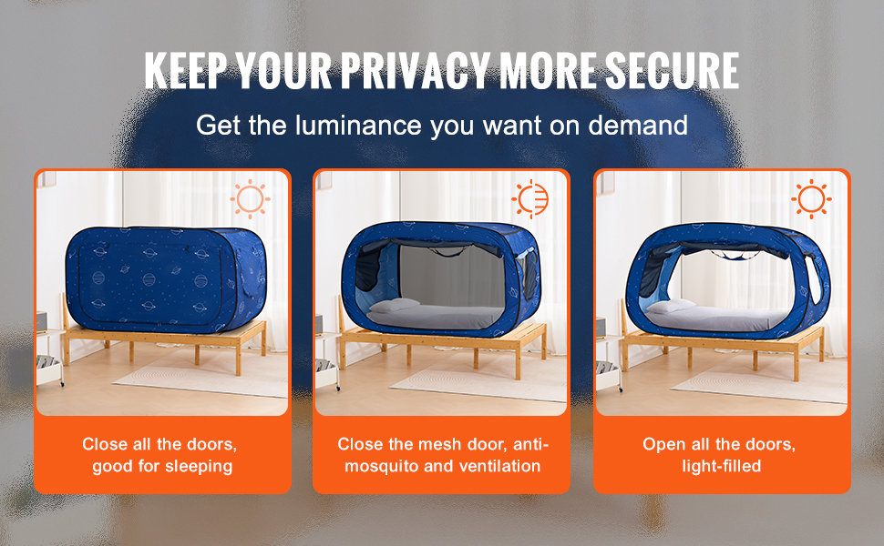 Keď zatvoríte všetky dvere, väčšina svetla sa zablokuje a vy môžete pohodlne spať aj cez deň. Môžete tiež zatvoriť len sieťové dvere pre lepšie zatemnenie proti komárom a vetranie. Keď otvoríte dvojité dvere, budete mať dostatok svetla.