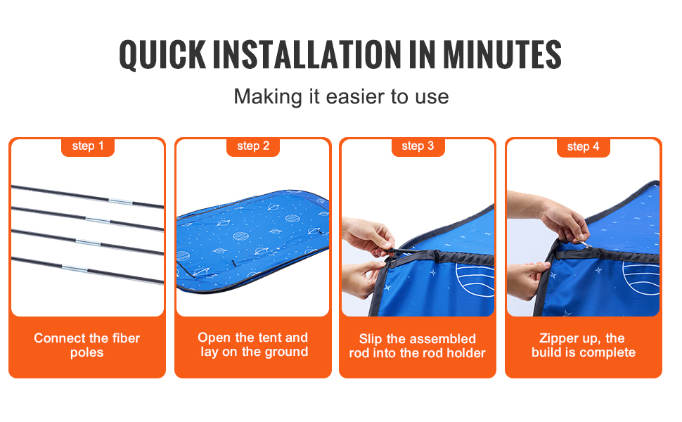 Jednoduchý proces inštalácie vám ušetrí čas a energiu. V priebehu niekoľkých minút si môžete ľahko zriadiť vlastný súkromný priestor, aby ste si mohli rýchlejšie vychutnať útulný priestor stanu.