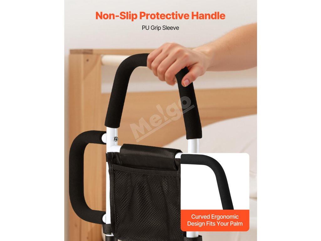 Bočné madlo k posteli, nastaviteľné, oceľová trubka, pu rukoväť