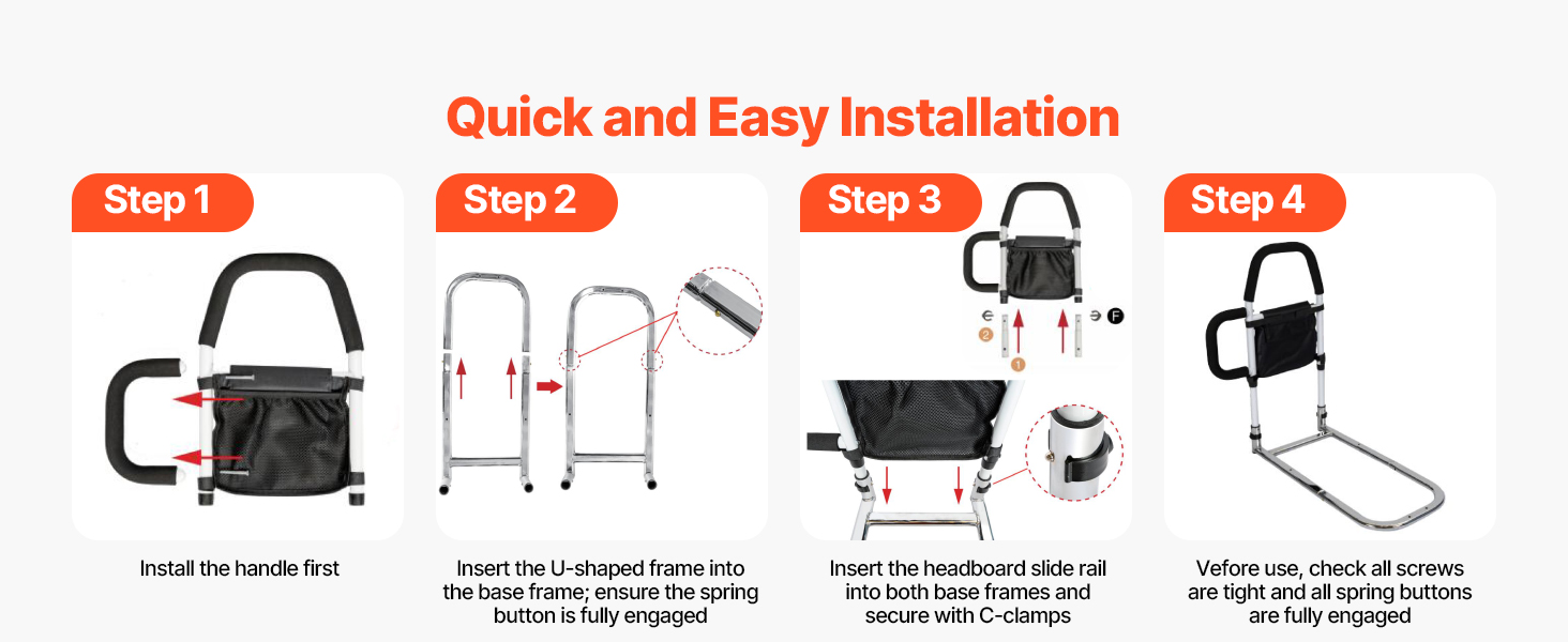 Pomocná lišta na posteľ sa jednoducho nastavuje - nie sú potrebné žiadne zložité nástroje ani odborné zručnosti, čo používateľom umožňuje rýchlu a bezproblémovú inštaláciu.