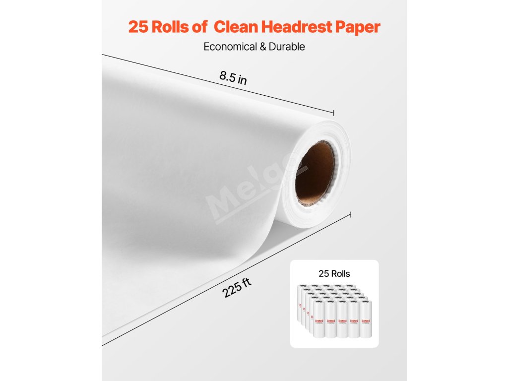 Každé balenie obsahuje 25 roliek papierových listov na opierky hlavy s veľkokapacitným dizajnom, ktorý uspokojí vaše každodenné potreby. Tento jednorazový papier na opierky hlavy znižuje problémy s častou výmenou, čím pomáha skrátiť čas aj náklady.
