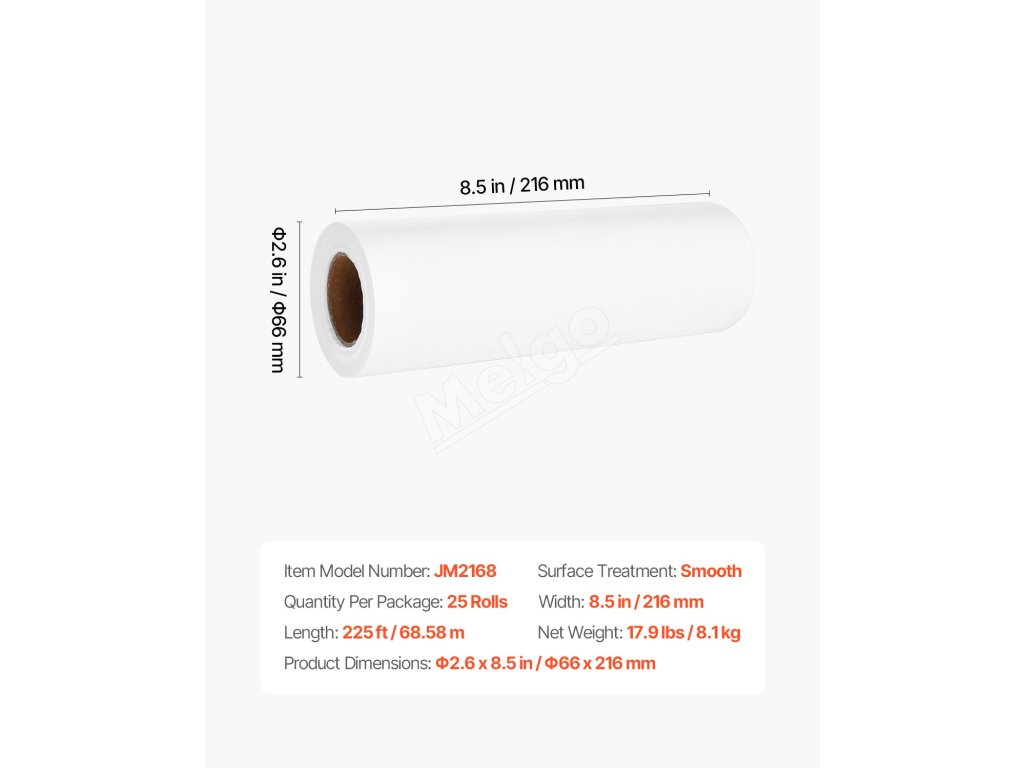 Jednorazové papierové role na opierku hlavy 25 ks 8.5"×225 ft biele
