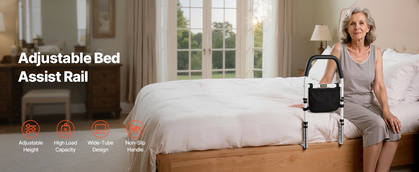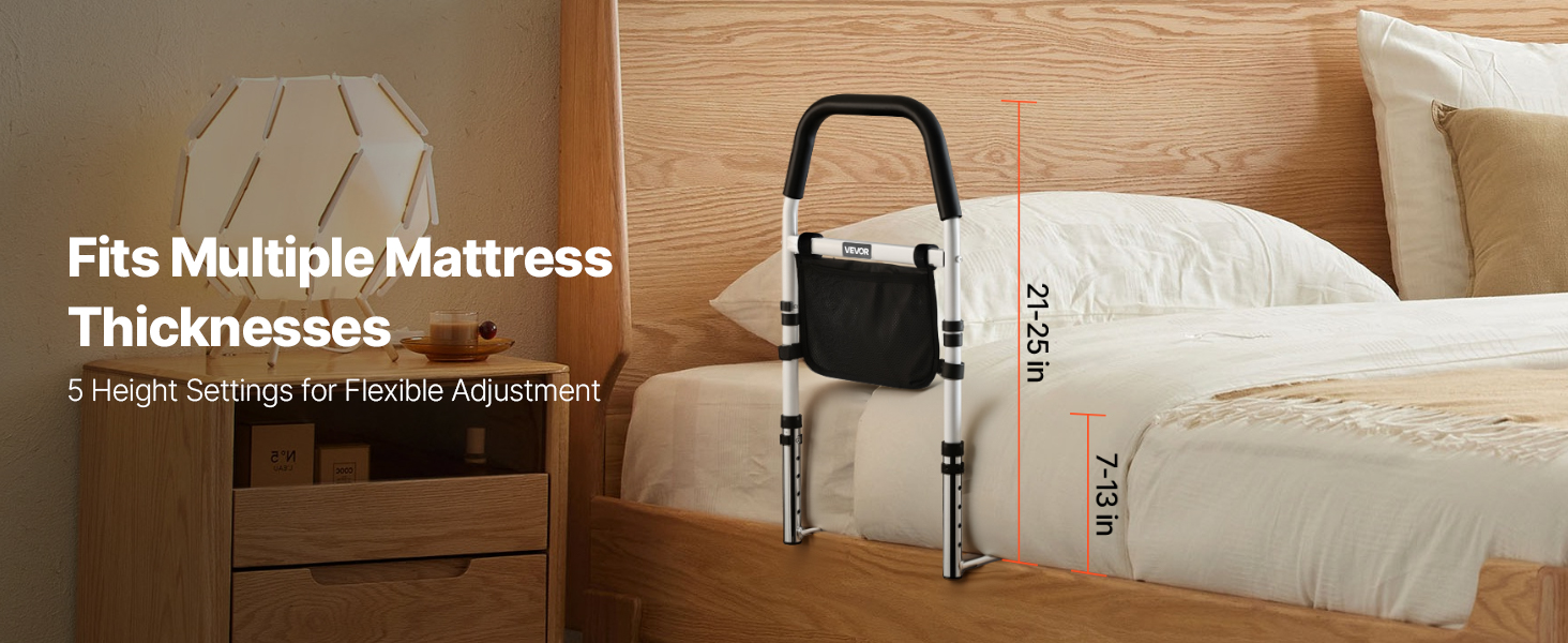 Táto posteľná zábrana umožňuje flexibilné nastavenie výšky podľa potrieb alebo výšky rôznych používateľov, vďaka čomu je vstávanie a vstávanie z postele pohodlnejšie.
