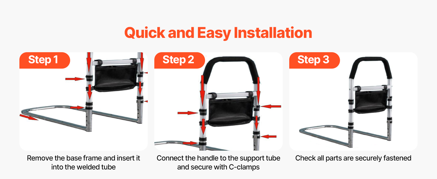 Pomocná lišta na posteľ sa jednoducho nastavuje - nie sú potrebné žiadne zložité nástroje ani odborné zručnosti, čo používateľom umožňuje rýchlu a bezproblémovú inštaláciu.