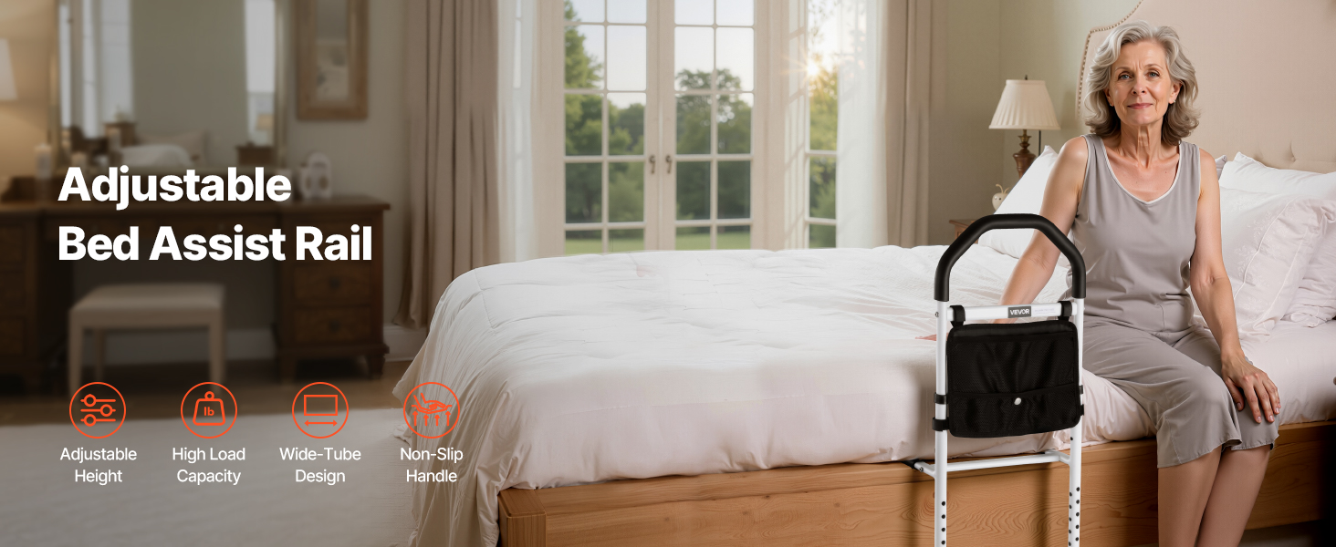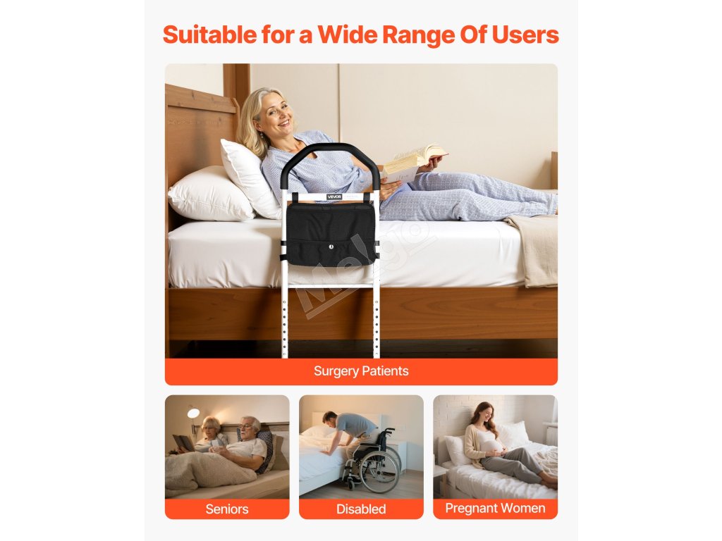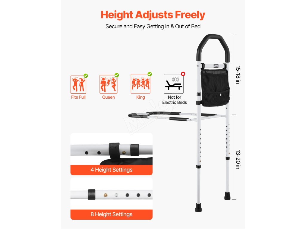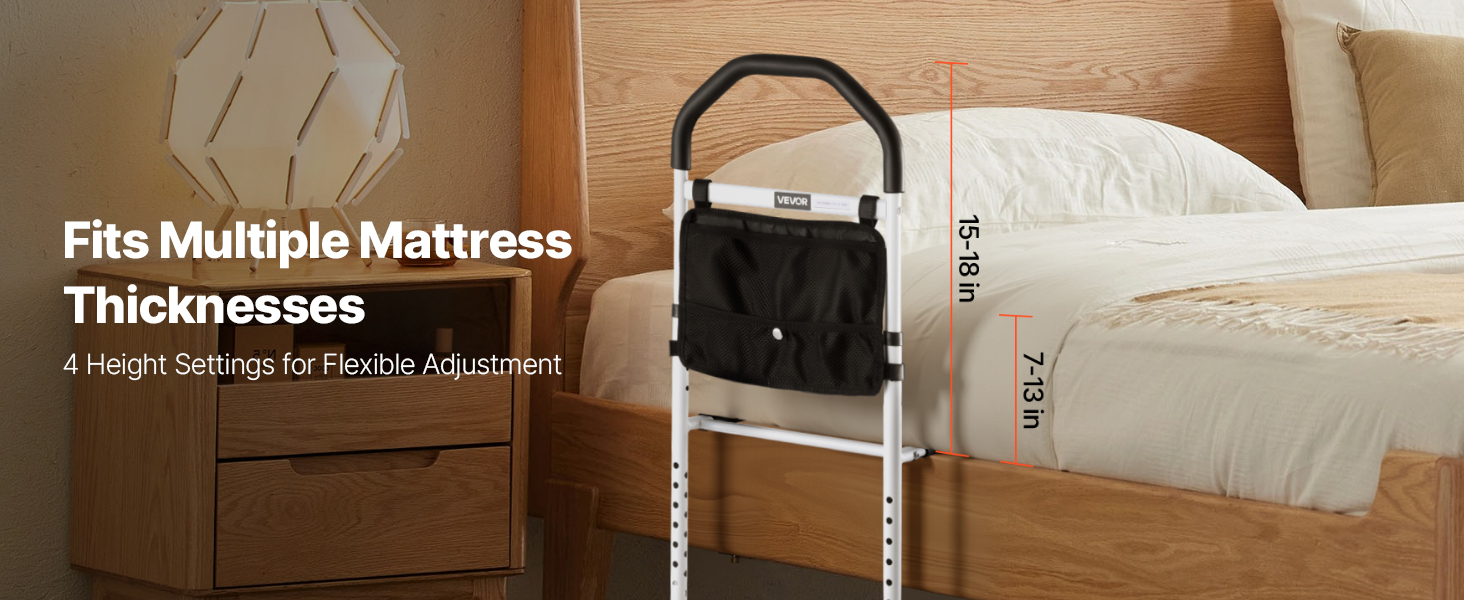 Táto posteľná zábrana umožňuje flexibilné nastavenie výšky podľa potrieb alebo výšky rôznych používateľov, vďaka čomu je vstávanie a vstávanie z postele pohodlnejšie.