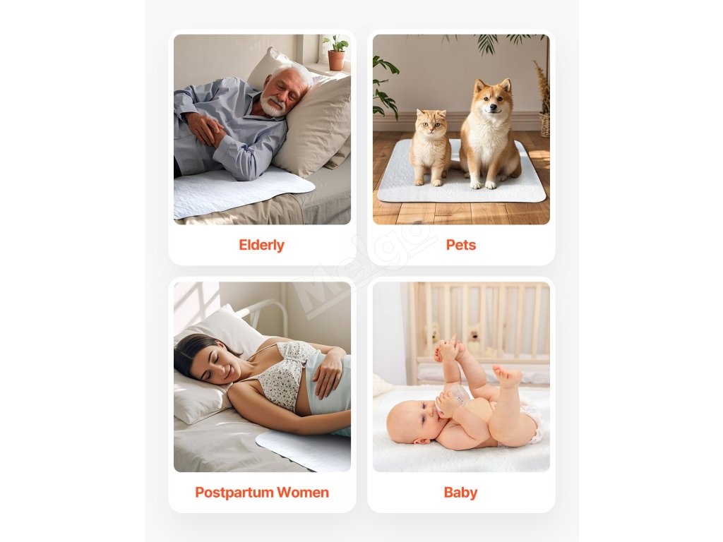 Táto multifunkčná podložka, ktorá je vhodná pre viaceré scenáre vrátane veľkých postelí, stoličiek a detských postieľok, sa ľahko premení na chrániče postele alebo chrániče stoličky. Ponúka dvojitú ochranu, ktorá zabraňuje akémukoľvek náhodnému presiaknutiu tekutiny.
