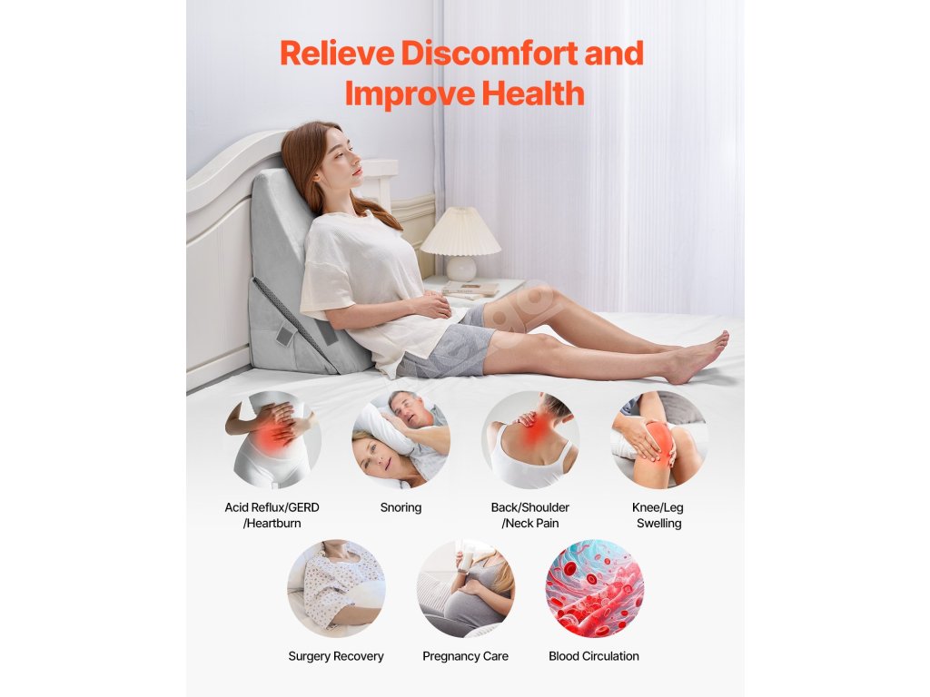 Naklonená konštrukcia tohto chirurgického vankúša na spanie pomáha zmierniť chrápanie, reflux kyseliny, bolesti chrbta, opuchy nôh a ďalšie problémy, čím podporuje rýchlejší spánok a znižuje fyzické nepohodlie.