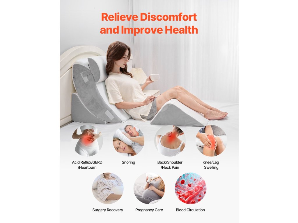Naklonená konštrukcia tohto chirurgického vankúša na spanie pomáha zmierniť chrápanie, reflux kyseliny, bolesti chrbta, opuchy nôh a ďalšie problémy, čím podporuje rýchlejší spánok a znižuje fyzické nepohodlie.