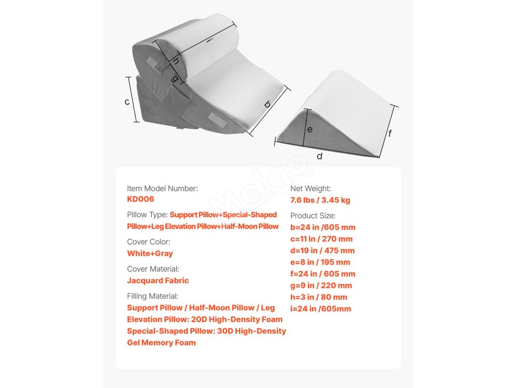 | Typ vankúša | Podporný vankúš+trojuholníkový vankúš+vankúš na zdvihnutie nôh+polmesiacový vankúš |