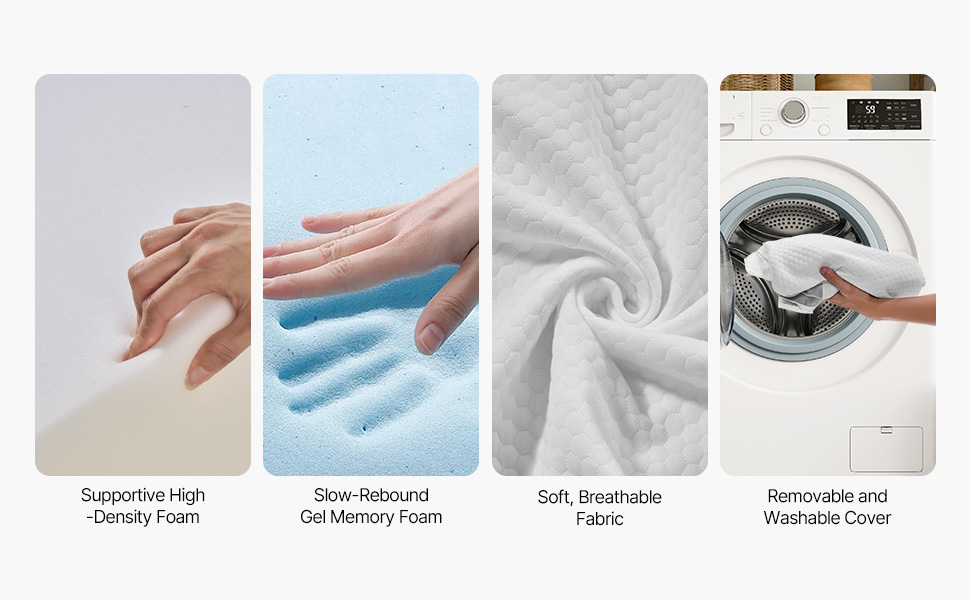 Tento klinový vankúš na čelo postele, vyrobený z peny s vysokou hustotou, pomaly sa uvoľňujúcej gélovej pamäťovej peny a mäkkého, priedušného a prateľného poťahu, zaručuje lepšie pohodlie a bezpečnosť.