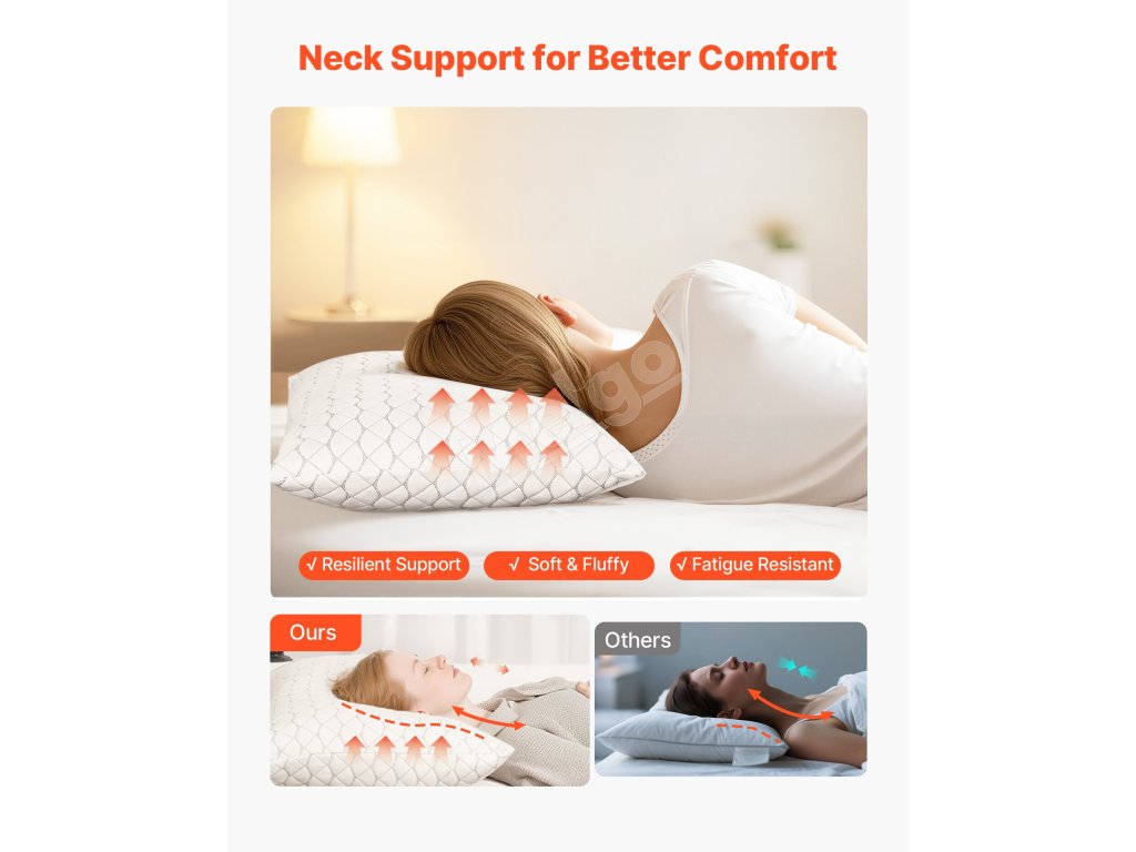 Náš vankúš na spanie zachováva prirodzenú krivku vášho krku, zmierňuje tlakové body a podporuje zmenu polohy počas spánku, únavu krku a zlú kvalitu spánku pre pokojné noci.