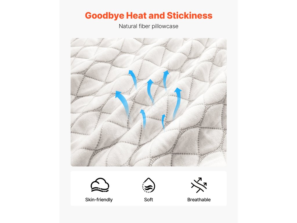 Prírodná pevná tkanina nášho mäkkého vankúša odvádza vlhkosť, je priedušná a udržiava vás v pohodlí po celý rok so sviežim, suchým pocitom.