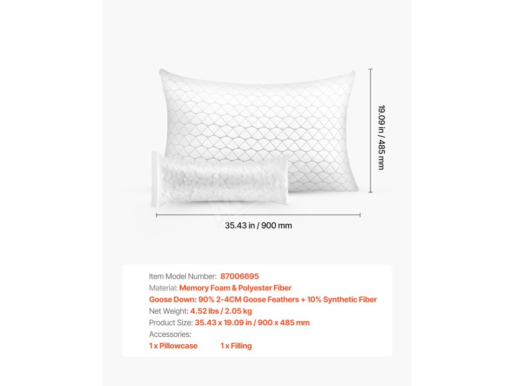 Náš vankúš do postele obsahuje 1/2 libry náplne, ktorá umožňuje prispôsobiť výšku a tvrdosť vankúša, čo je ideálne pre rôzne polohy počas spánku a individuálne pohodlie.
