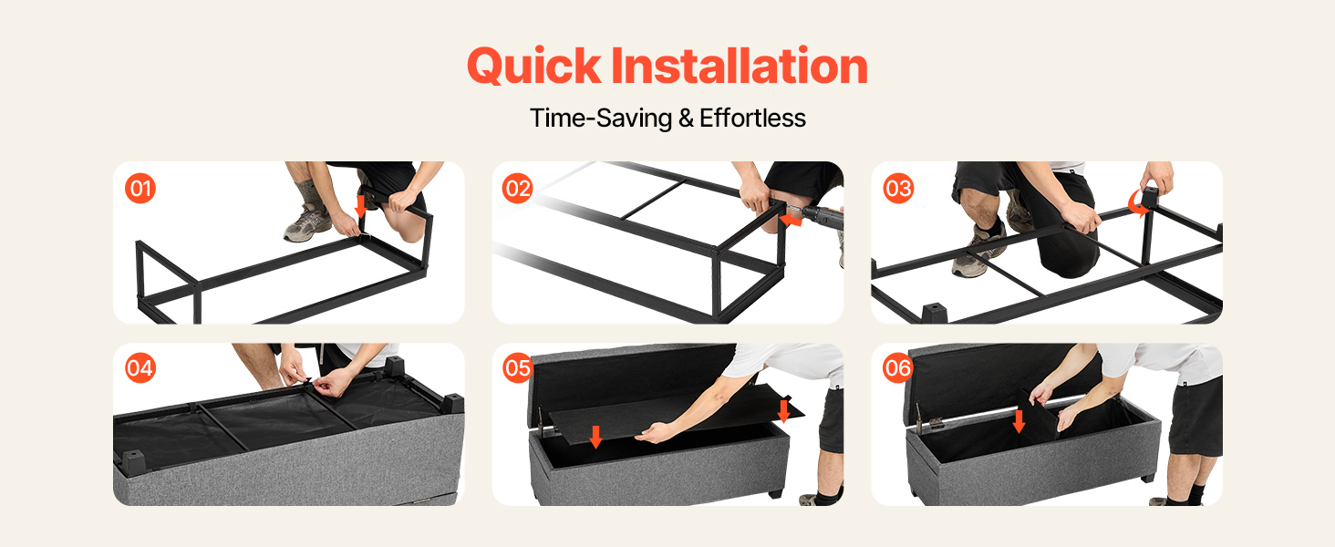 Nie sú potrebné žiadne špeciálne nástroje - inštalácia trvá len niekoľko minút. Náš úložný otoman nemá zložitý proces inštalácie a bez problémov sa začlení do vášho domáceho života. Komfort a pohodlie si môžete užívať rýchlo.