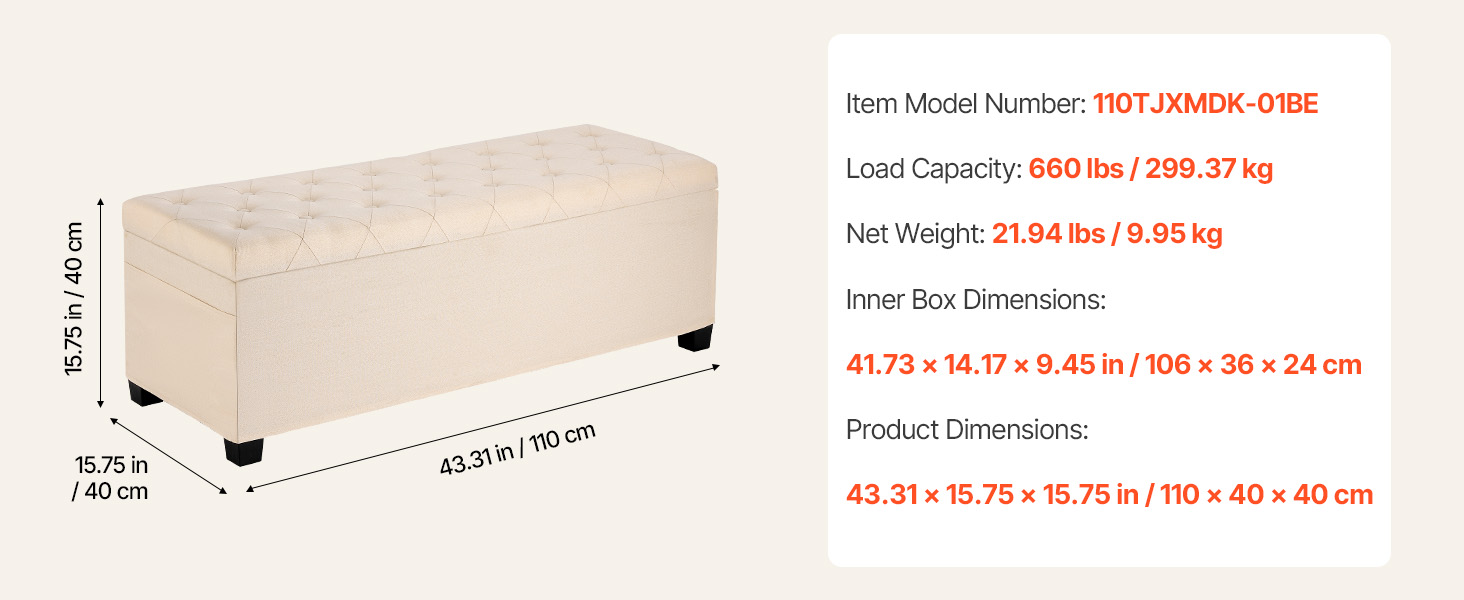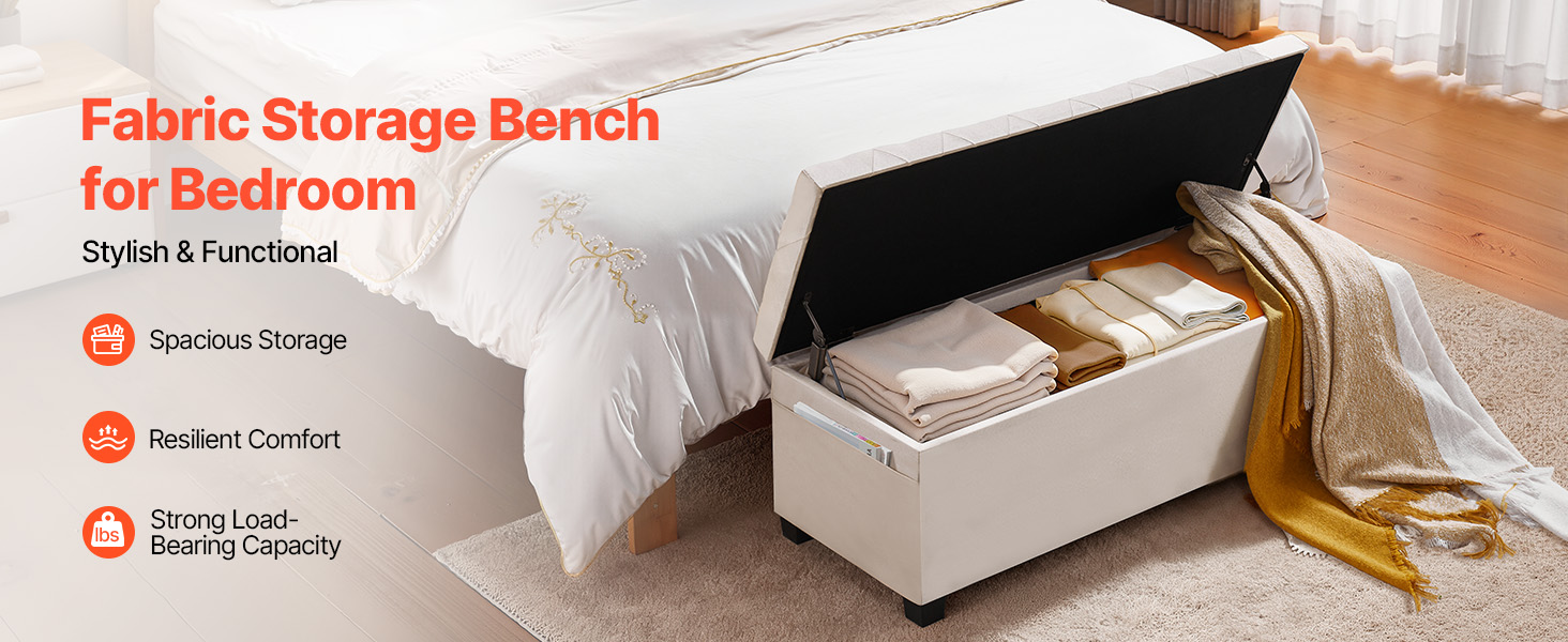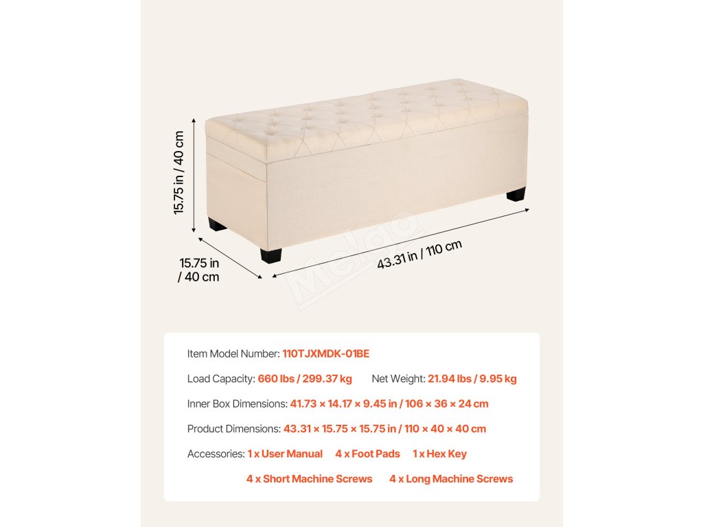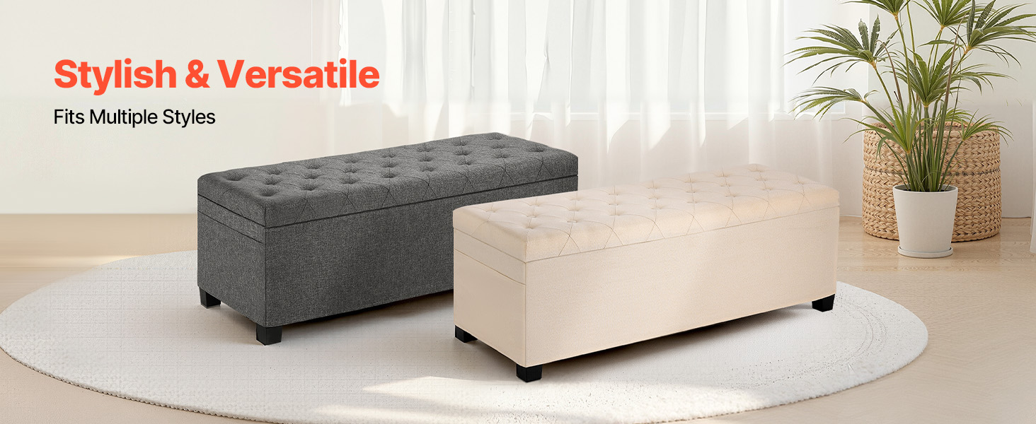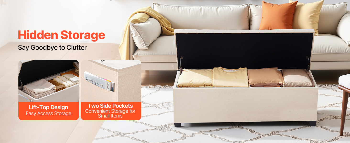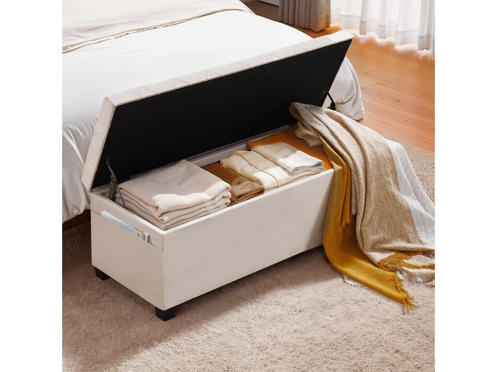 Naša úložná lavica otoman, navrhnutá s výklopným vekom, poskytuje priestranný vnútorný priestor na uloženie posteľnej bielizne, kníh alebo vecí dennej potreby. Do jej dvoch bočných vreciek možno uložiť drobné predmety, ako sú diaľkové ovládače alebo telefóny. Táto úložná lavica nielen šetrí miesto a umožňuje rýchlo nájsť to, čo potrebujete.
