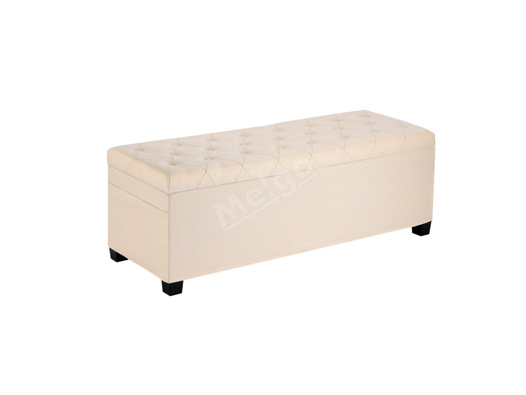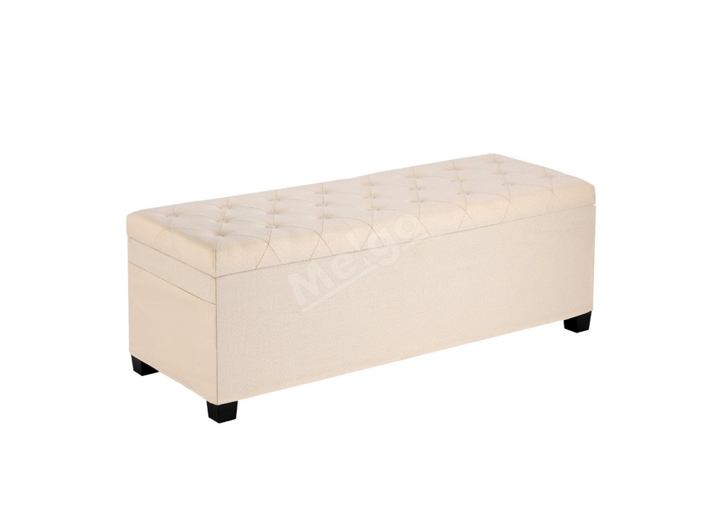 Úložný taburet s gombíkmi, výklopné veko, ľanové čalúnenie, béžový