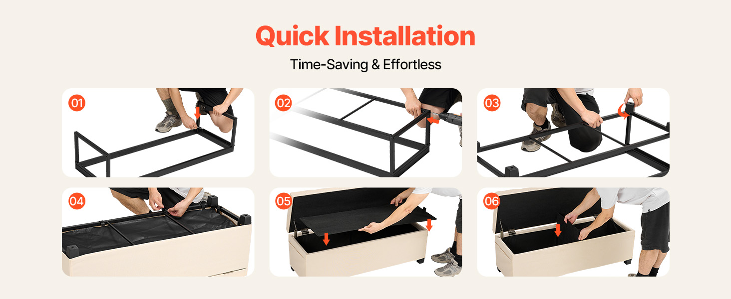 Nie sú potrebné žiadne špeciálne nástroje - inštalácia trvá len niekoľko minút. Náš úložný otoman nemá zložitý proces inštalácie a bez problémov sa začlení do vášho domáceho života. Komfort a pohodlie si môžete užívať rýchlo.