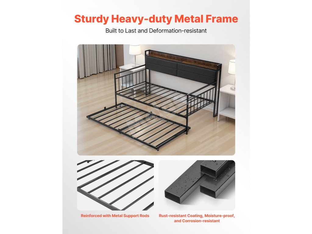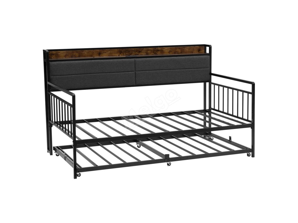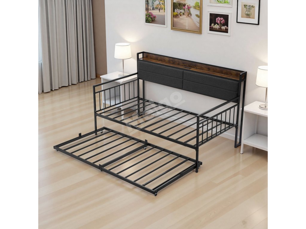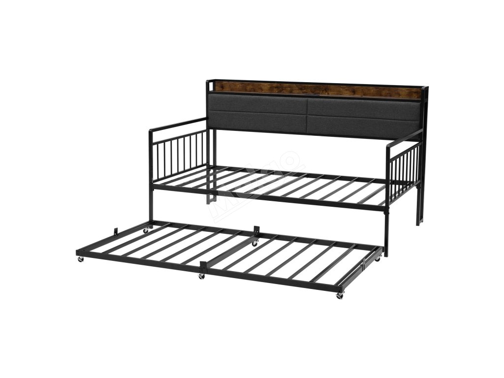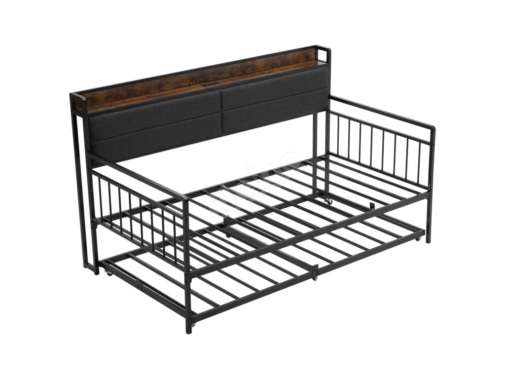 Jednolôžkový rám daybedu twin s prístelkou, kovový, nabíjacia stanica
