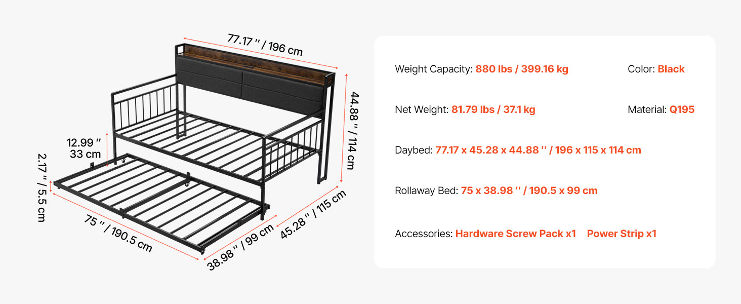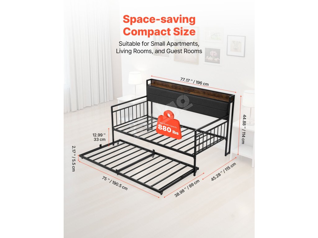 | Denná posteľ | 77.17 x 45,28 x 44,88 palcov / 196 x 115 x 114 cm |