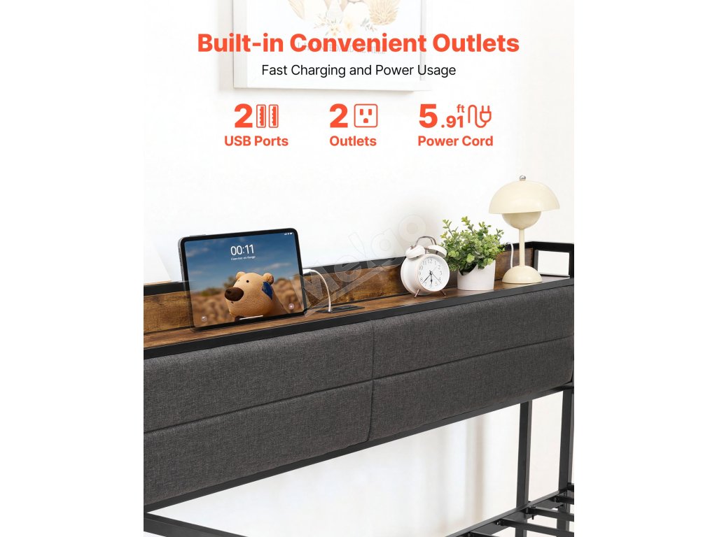 Čelo tejto dvojlôžkovej dennej postele integruje praktické funkcie nabíjania a dostatok úložného priestoru, čo uľahčuje nabíjanie elektronických zariadení alebo organizovanie osobných vecí.