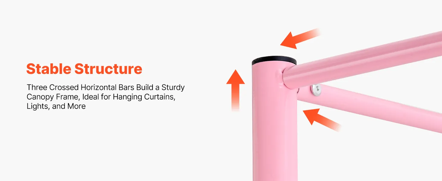 A2: Určite. Horný rám je vybavený tromi priečnikmi určenými na zavesenie záclon, svetelných strún alebo sietí proti hmyzu. Konštrukcia je stabilná a ľahko unesie ľahké dekorácie. V záujme bezpečnosti sa vyhnite zaveseniu ťažkých predmetov.