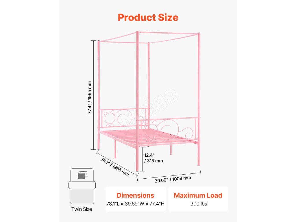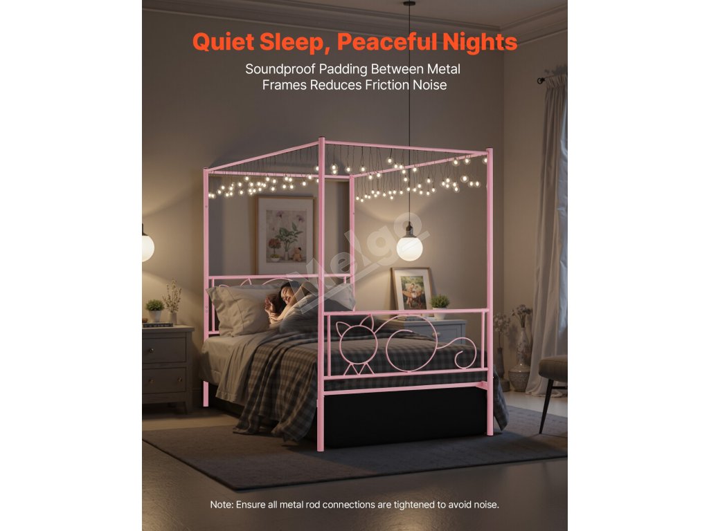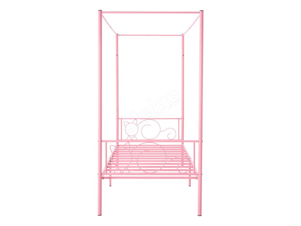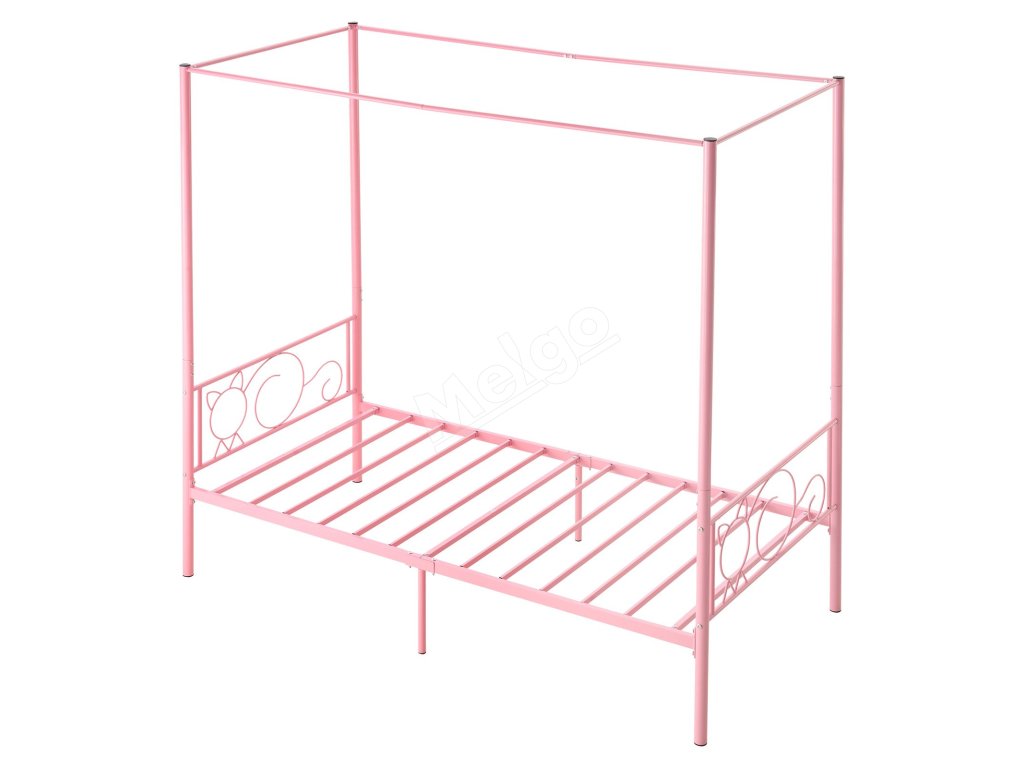 Kovová twin posteľ s 4 stĺpmi, úložný priestor, lamely, ružová