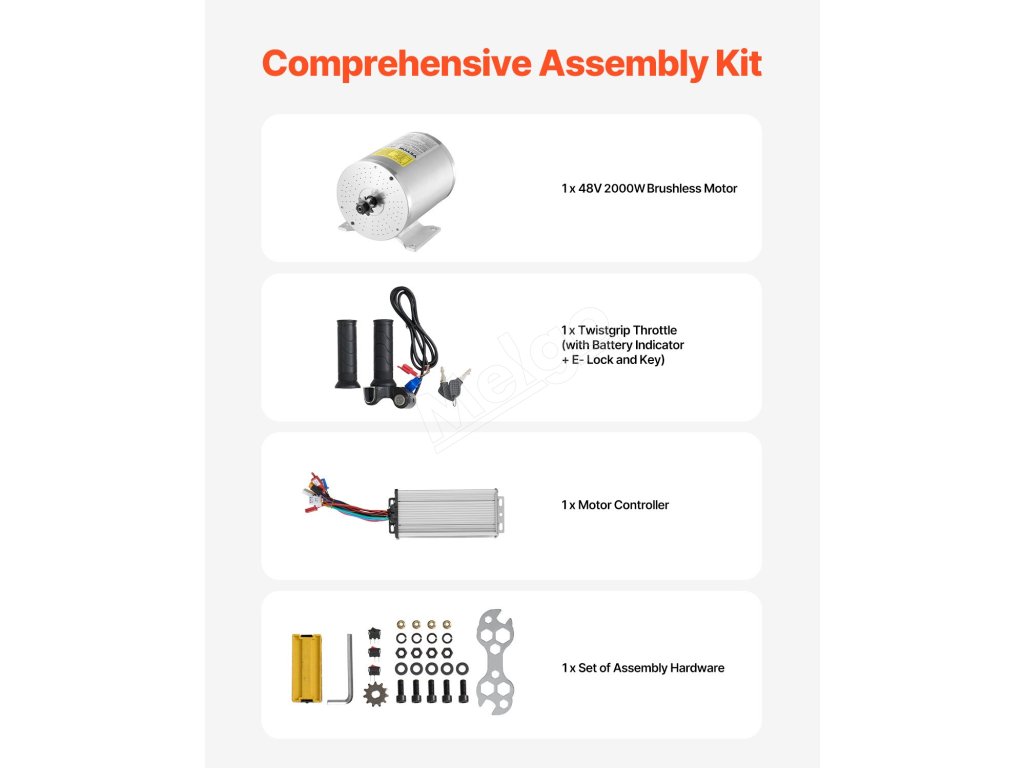 Vylepšite svoju jazdu s istotou a zažite vyšší výkon, spoľahlivosť a radosť z jazdy so sadou 2000W 48V bezkartáčového jednosmerného motora, vylepšeným regulátorom, menovitým krútiacim momentom 4,8 N.m a dvojsmerným ovládaním v smere CW a CCW. Bez námahy zdolávajte stúpania do kopca a ľahko prekonávajte náročné terény.