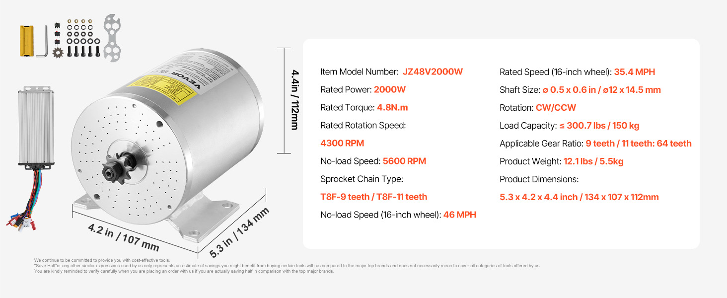 Vylepšite svoju jazdu s istotou a zažite vyšší výkon, spoľahlivosť a potešenie vďaka súprave 2000W 48V bezkartáčového jednosmerného motora, modernizovanému regulátoru, menovitému krútiacemu momentu 4,8 N.m a dvojsmernému ovládaniu v smere CW a CCW. Bez námahy zdolávajte stúpania do kopca a ľahko prekonávajte náročné terény.