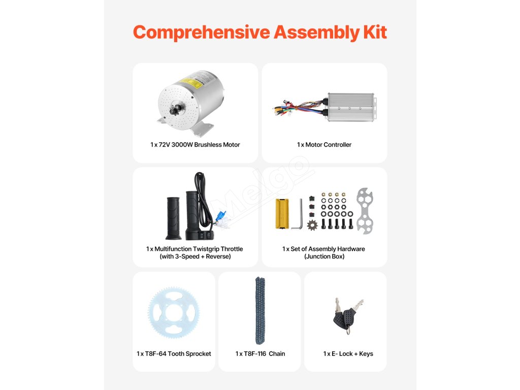 Vylepšite svoju jazdu s istotou a zažite vyšší výkon, spoľahlivosť a potešenie vďaka súprave bezkartáčového jednosmerného motora s výkonom 3000 W a napätím 72 V, modernizovanému regulátoru, menovitému krútiacemu momentu 5,5 N.m a dvojsmernému ovládaniu v smere hodinových ručičiek a v smere hodinových ručičiek. Bez námahy zdolávajte stúpania do kopca a ľahko prekonávajte náročné terény.