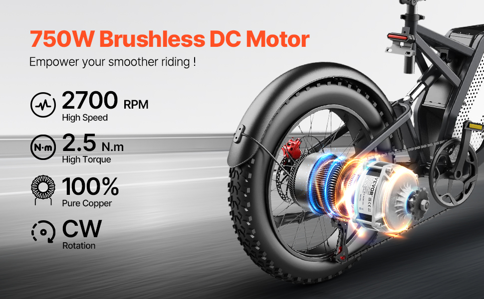Vylepšite svoju jazdu s istotou a zažite vyšší výkon, spoľahlivosť a radosť z jazdy so 750W 48V bezkartáčovým jednosmerným motorom, modernizovaným regulátorom, menovitým krútiacim momentom 2,5 N.m a ovládaním smeru jazdy v smere hodinových ručičiek. Bez námahy zdolávajte stúpania do kopca a s ľahkosťou prekonávajte náročné terény.