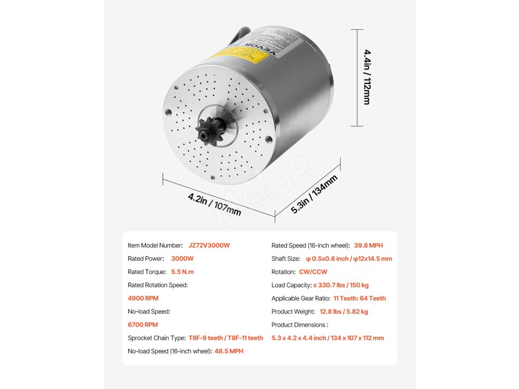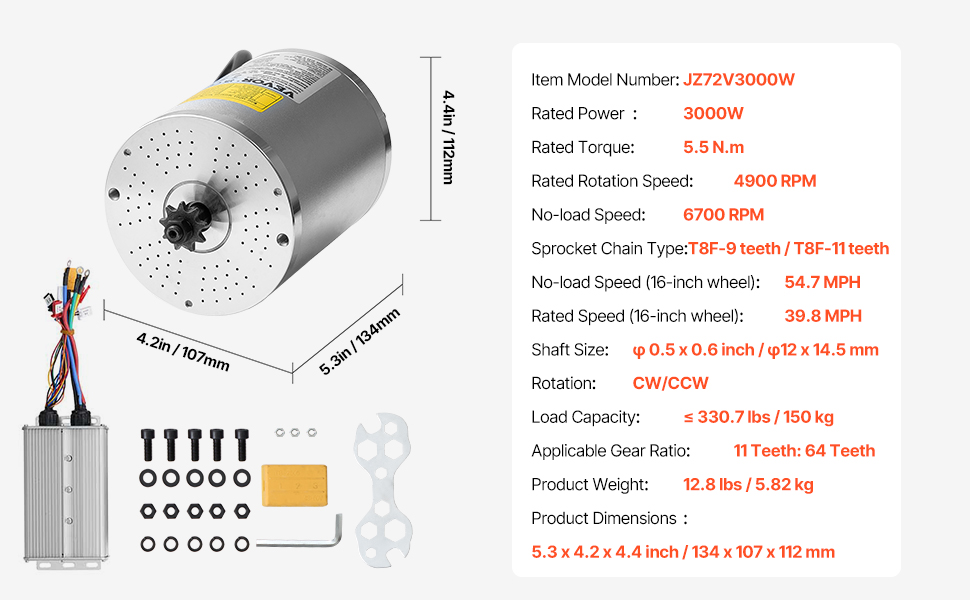 Vylepšite svoju jazdu s istotou a zažite vyšší výkon, spoľahlivosť a potešenie vďaka súprave bezkartáčového jednosmerného motora s výkonom 3000 W a napätím 72 V, modernizovanému regulátoru, menovitému krútiacemu momentu 5,5 N.m a dvojsmernému ovládaniu v smere hodinových ručičiek a v smere hodinových ručičiek. Bez námahy zdolávajte stúpania do kopca a ľahko prekonávajte náročné terény.