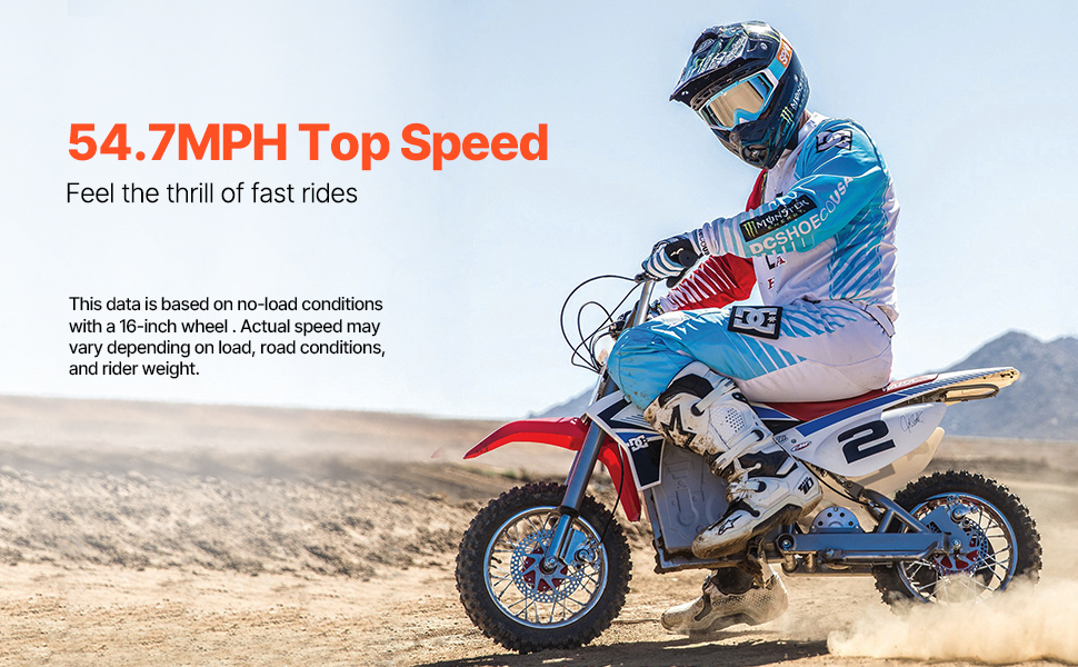 Zažite dokonalé vzrušenie s rýchlosťou 54,7 MPH bez zaťaženia! Pocíťte radosť z rýchlej jazdy, vďaka ktorej bude každá cesta nezabudnuteľná. (Táto maximálna rýchlosť je založená na podmienkach bez zaťaženia so 16-palcovým kolesom - skutočná rýchlosť sa môže líšiť v závislosti od zaťaženia, podmienok na ceste a hmotnosti jazdca)